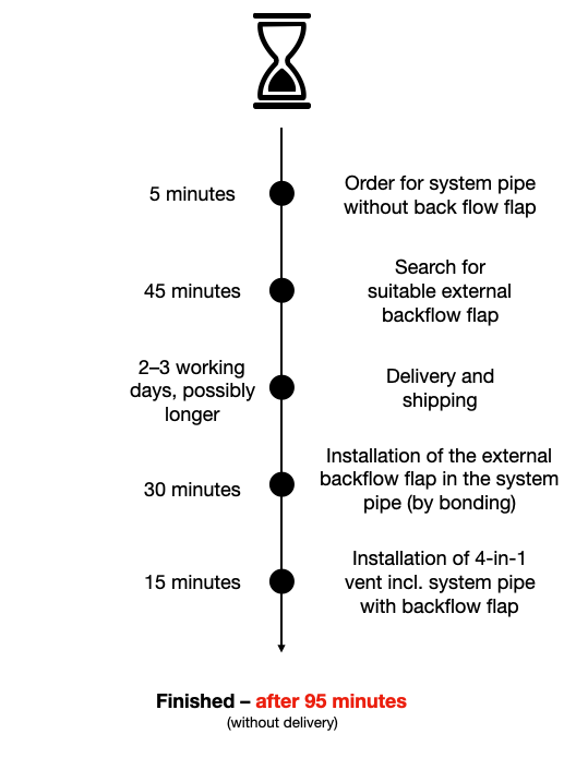 Thanks to our system pipes, the times of subsequent incorporation of a backflow flap are a thing of the past.