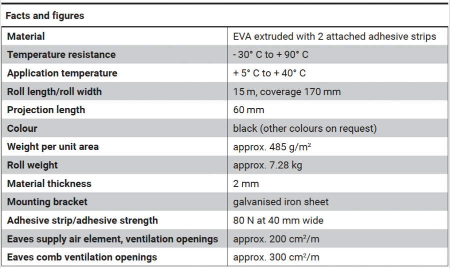 Please note that the eaves supply air elements and eaves combs are available from FLECK separately and are not included with the tape.