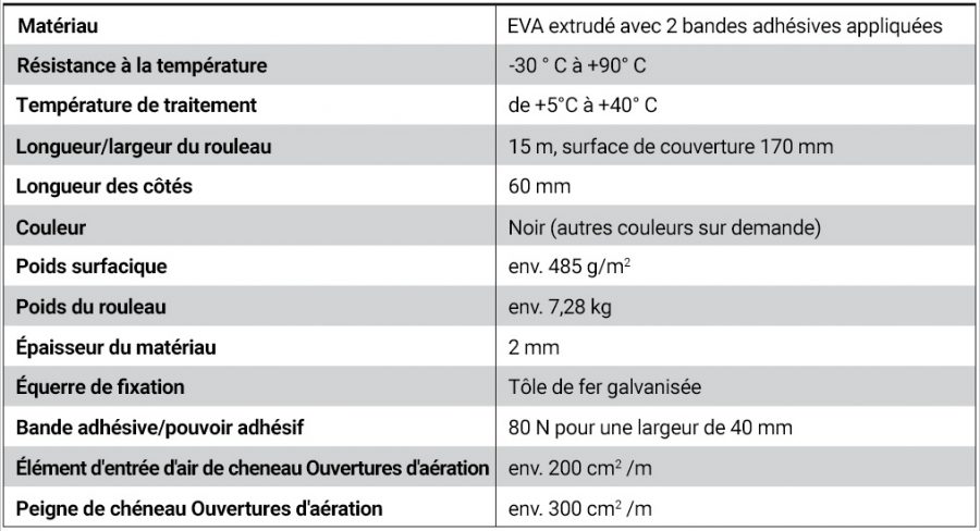 Veuillez noter que les éléments d’entrée d’air de chéneau et les peignes de chéneaux sont disponibles séparément et qu’ils ne sont pas fournis à la livraison.