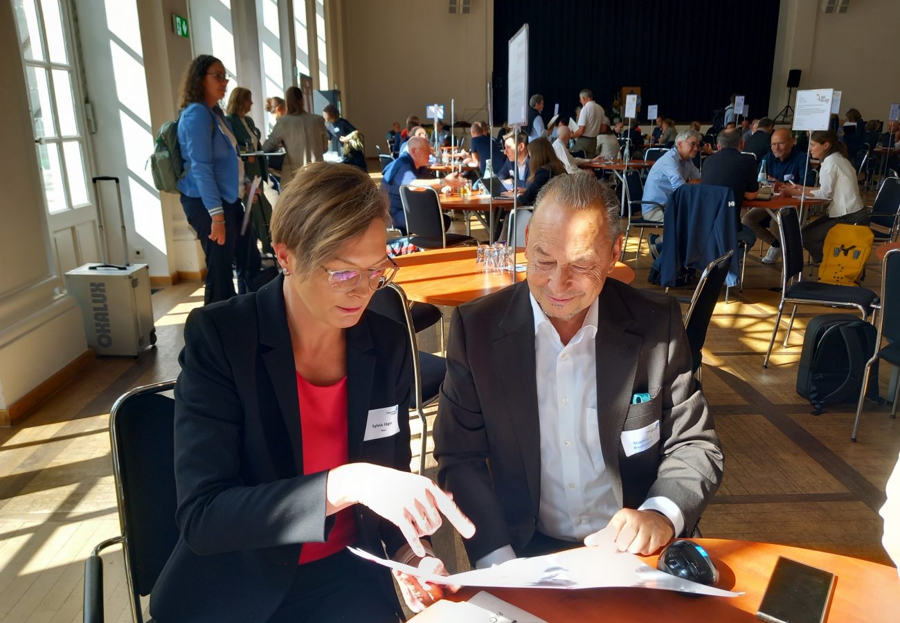 Auch in diesem Jahr waren wir auf der baupressekompakt vertreten: Sylvia Jäger, Leitung Marketingkommunikation und Assistenz der Geschäftsführung, im Gespräch mit Matthias Bruchmann vom Presseportal Bruchmann.
