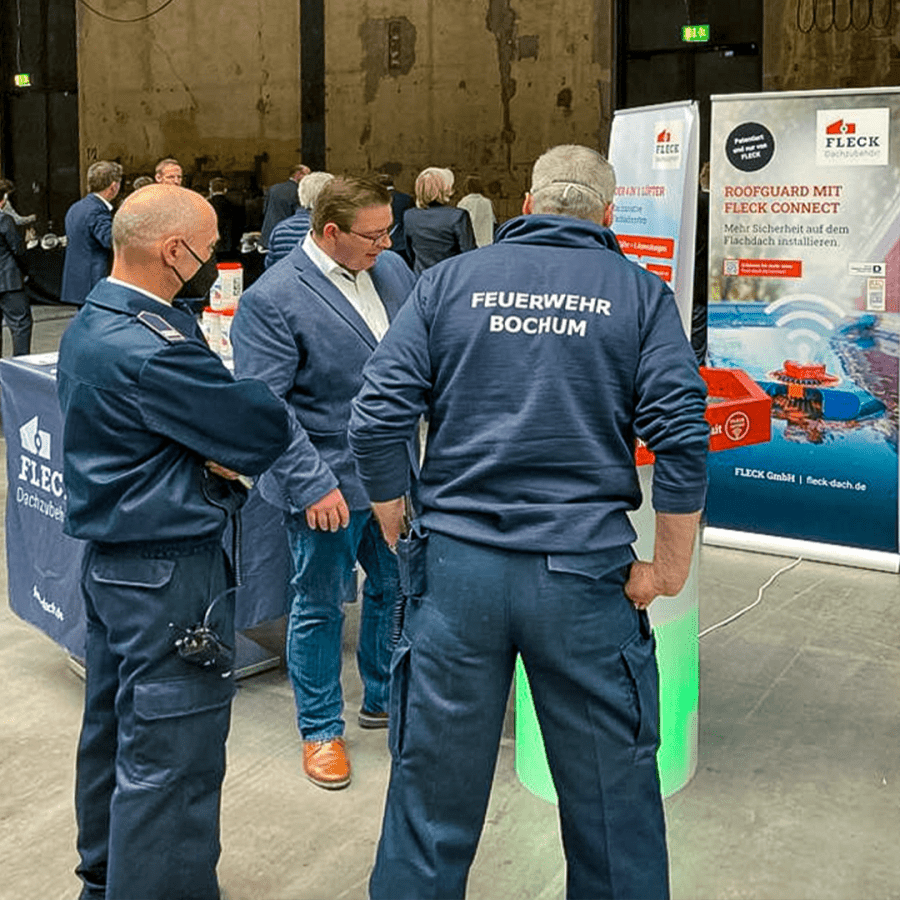 Nicht nur das 4 in 1 Flachdachlüfter-System konnte das Publikum auf dem Kongress überzeugen, sondern auch unser ROOF SUPER DRY und der ROOFGUARD mit FLECK connect: „Einige Besucher haben berichtet, dass sie schon häufiger etwas über den ROOFGUARD gelesen haben, aber noch nicht die Möglichkeit hatten, ihn auszuprobieren. Vor allem die Erweiterung FLECK connect stieß in Gesprächen auf großes Interesse“, berichtet unser Außendienstmitarbeiter Daniel Bläsing, der gemeinsam mit unserem neuen Vertriebsmitarbeiter Robert Middeweg vor Ort war.