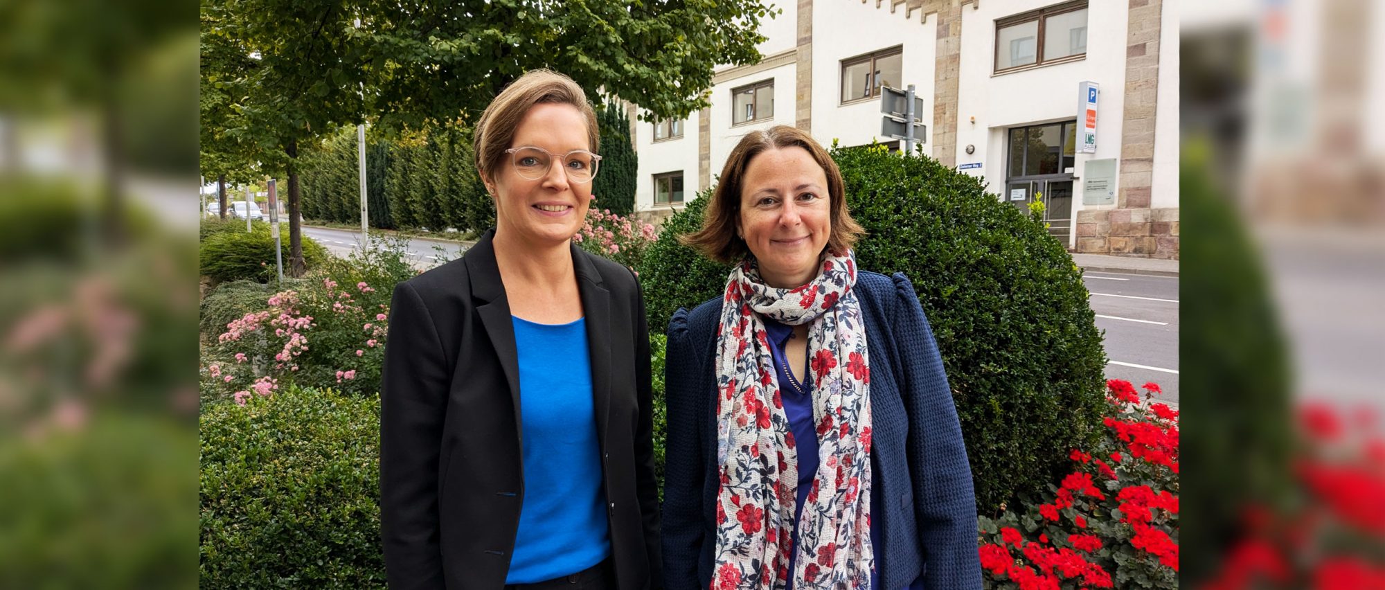 Monika Verspohl, Senior Management BaustoffMarkt (r.), und Sylvia Jäger, Teamleitung Marketingkommunikation bei FLECK (l.), trafen im September im Rahmen einer Veranstaltung aufeinander und sprachen dort u. a. auch über das diesjährige Baustoff-Jahrbuch.