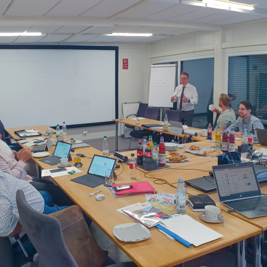 Bei FLECK legen wir großen Wert auf den persönlichen Kontakt – das gilt für den Austausch mit unseren Kunden und Lieferanten ebenso wie für die Kolleginnen und Kollegen. So findet einmal im Quartal eine Vertriebstagung statt, bei der im Kreise der Außendienstmitarbeiter u. a. aktuelle vertriebliche Themen besprochen werden, z. B. im Hinblick auf den Absatz unserer neue(re)n Produkte wie dem ROOFGUARD mit FLECK connect oder ECO FORM EASY. Darüber hinaus werden, gemeinsam mit Produktmanager Peter Nowack oder unserem technischen Leiter Fabian Ewald, produkt- bzw. anwendungstechnische Aspekte diskutiert.