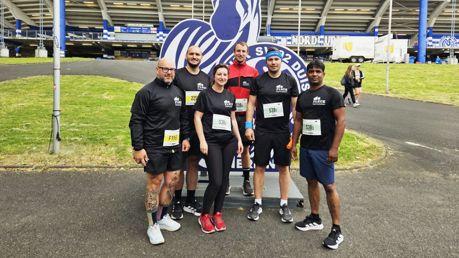 „Die Anreise hatte jeder für sich organisiert und wir haben uns in Duisburg getroffen“, erinnert sich Teamassistentin Deborah Kaps, die im Team der Staffel mitgelaufen ist. „Die Starternummern hatte ich bereits am Vortag für alle FLECK-Teilnehmenden abgeholt, sodass wir vor dem Start keinen Stress hatten. Auch trugen wir alle einheitliche Trikots mit unserem Firmenlogo.“