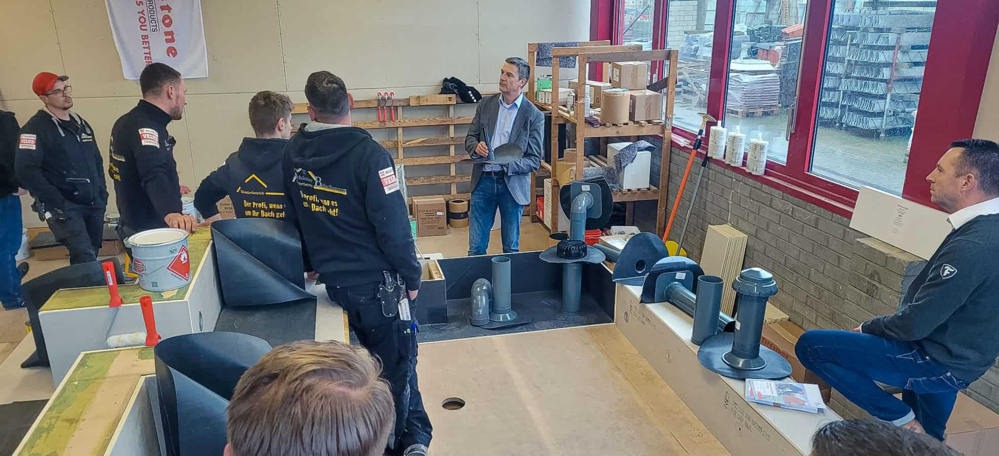 Für ein 2-Tages-Basis-Seminar, das Ende Februar im „Bildungszentrum des Baugewerbes“ bei Wesel stattgefunden hat, haben wir FLECK-Flachdachzubehör mit Firestone Flansch-Manschetten bereitgestellt, damit die Teilnehmer vor Ort anhand dessen den fachgerechten Einbau erlernen können.