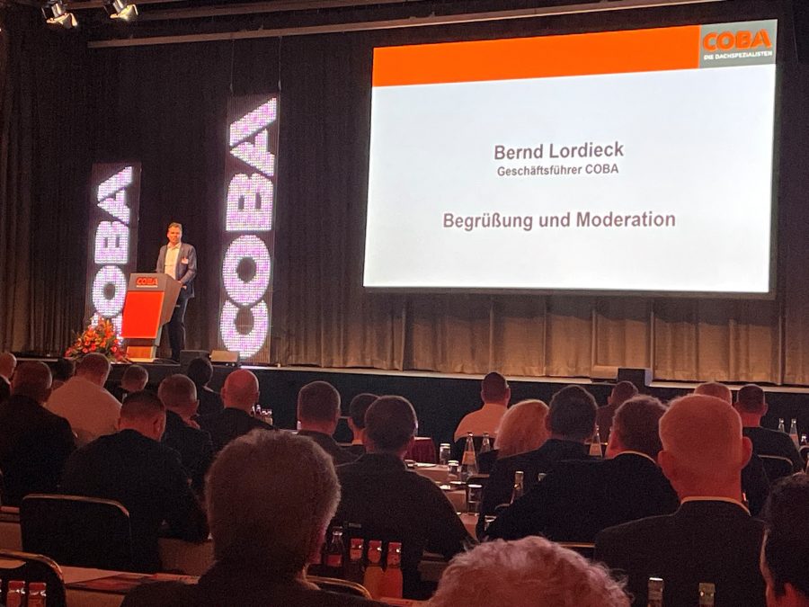 Mit 360 Anmeldungen stellte die Kooperation erneut einen Rekord auf. Den Auftakt machte Dirk Bollwerk, Präsident des ZVDH (Zentralverband des Deutschen Dachdeckerhandwerks), der die enge und erfolgreiche Kooperation mit der COBA hervorhob. Zudem ging er auf die zukünftigen Herausforderungen und Chancen der Dachdeckerbranche ein.