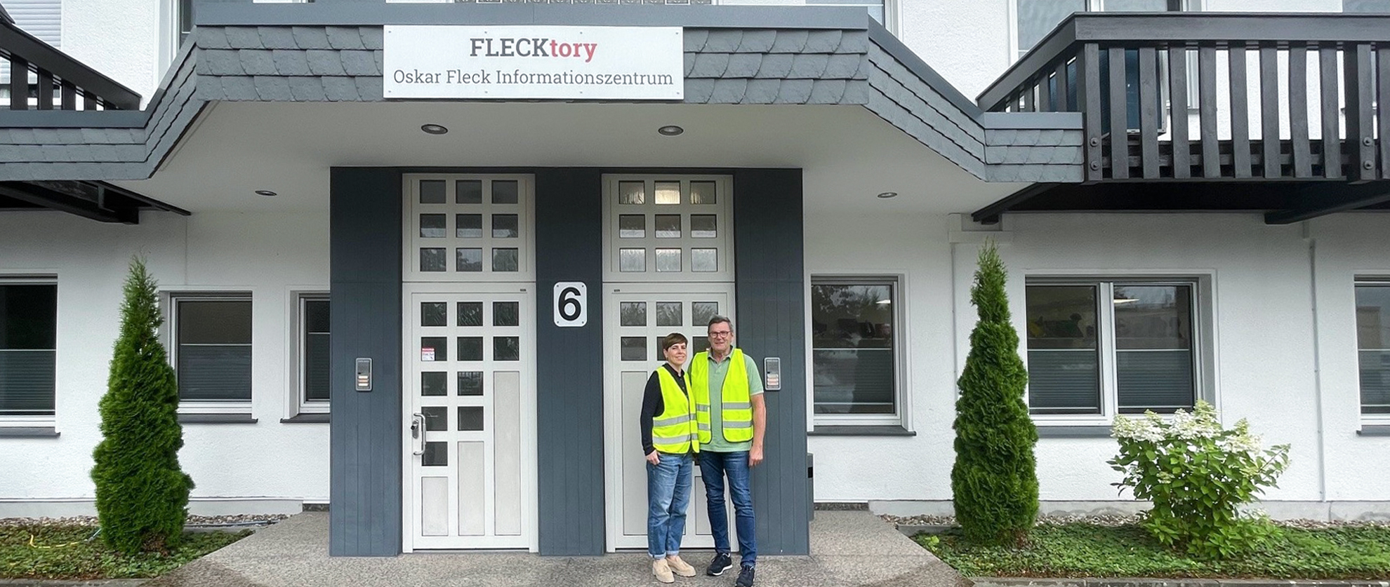 GFW-Geschäftsleiter Stobbe (r.) zusammen mit Produktmanagerin / Anwendungstechnik Britta Rugulies (l.) vor der FLECKtory