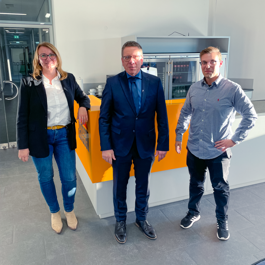 Bei Janssen in Mönchengladbach sprach Christoph Nielacny (m.) persönlich mit Janine Moors (l.) und Daniel do Nascimento Vaz (r.), beide aus der Einkaufsabteilung, über die konditionellen Rahmenbedingungen für 2023.