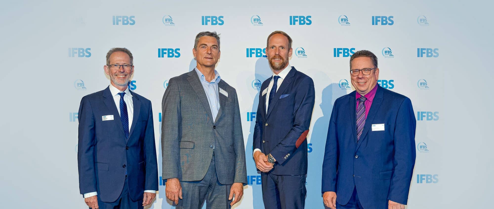 Auf dem Bild sehen Sie den Verbands-Geschäftsführer Dr.-Ing. Ralf Podleschny, unseren Produktmanager Peter Nowack, den neuen Vorstandsvorsitzenden des IFBS, Dr. Lars Pfeiffer (ArcelorMittal Construction Deutschland GmbH) sowie unseren Geschäftsführer Christoph Nielacny.