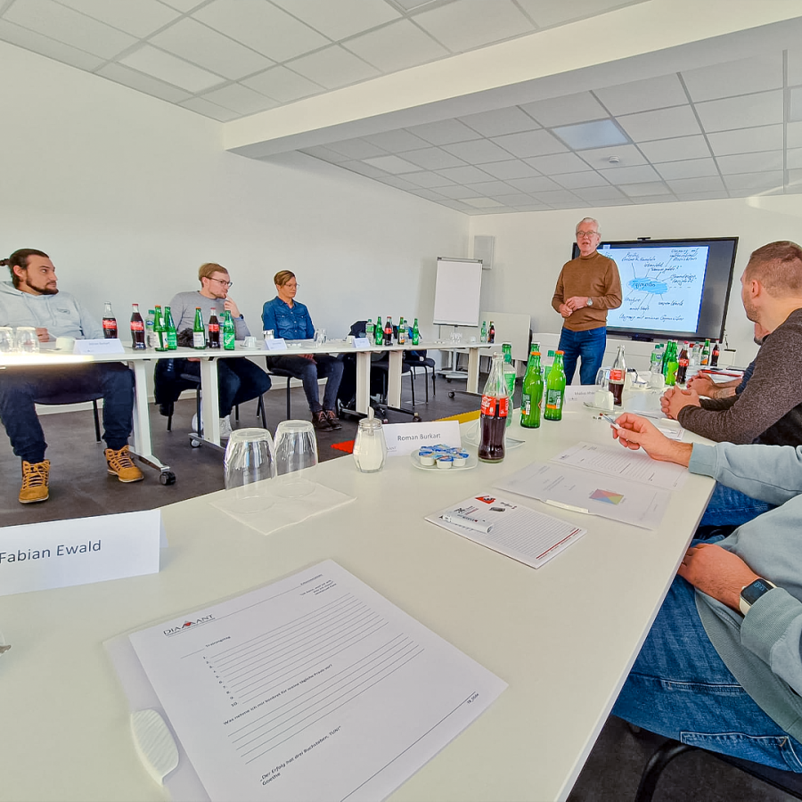 Die Trainingstage fanden in der FLECKtory – Oskar Fleck Informationszentrum in Oer-Erkenschwick statt. Als Übungsleiter hat FLECK Dieter Bien von DIAMANT Training Coaching Seminare Bien, Rheindorf und Partner aus Euskirchen, eingeladen. Er schult auch unsere Mitarbeiter aus dem Verkaufsaußendienst regelmäßig zu verkäuferischen Themen und ist somit gern gesehener Gast bei FLECK.