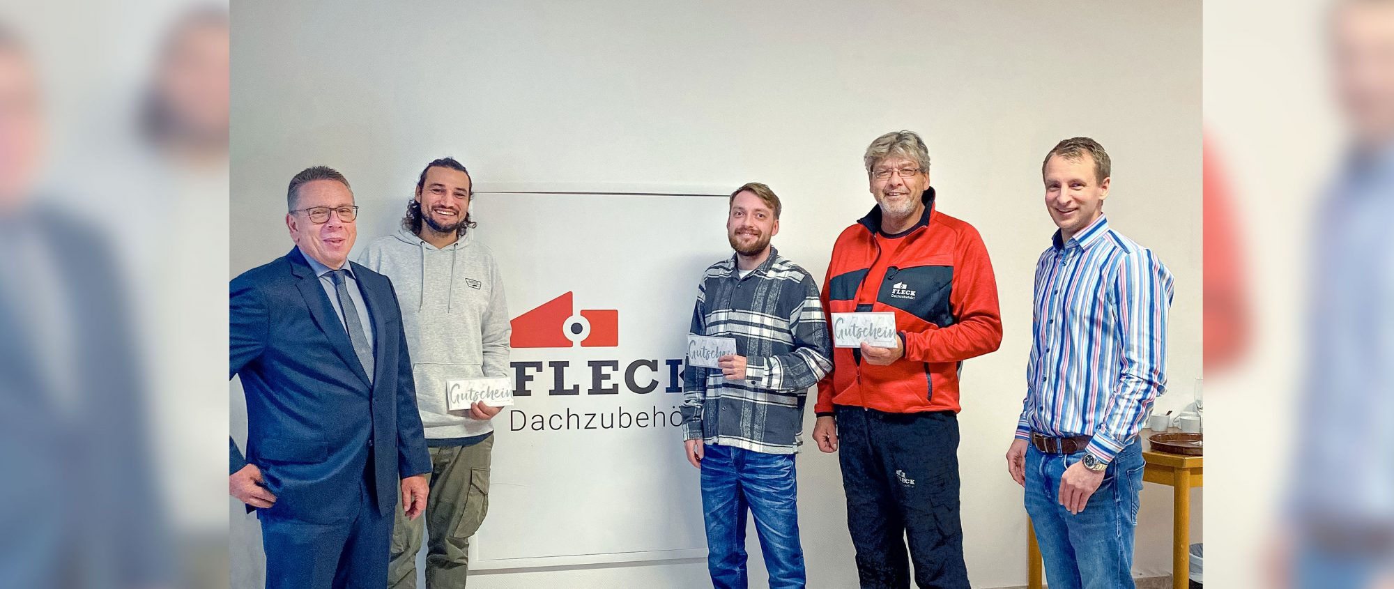 Am 18. Oktober fand in Datteln die feierliche Preisverleihung statt. Michael Benterbusch aus unserer Lackiererei in Datteln, Adrian Burkart, Leiter des FLECK-Vertriebsinnendienstes und Max Schnatmann aus dem Innendienst konnten sich über einen Gutschein des Landhotels Voshövel in Schermbeck im Wert von je 200 Euro freuen.