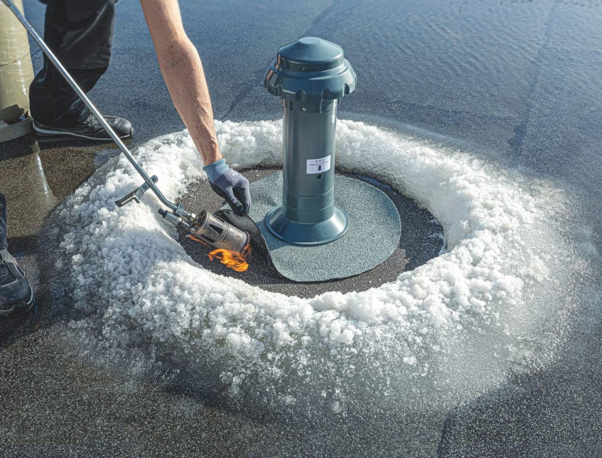Mit dem neuen ROOF SUPER DRY können viele nachträgliche Arbeiten auf dem Flachdach, wie das Einsetzen eines FLECK Flachdach-Gullys, die Installation eines Flachdach-Schwanenhalses oder die Montage eines FLECK 4 in 1 Flachdachlüfters schnell und kostengünstig erfolgen – ohne zuvor die gesamte Dachfläche trocknen zu müssen.