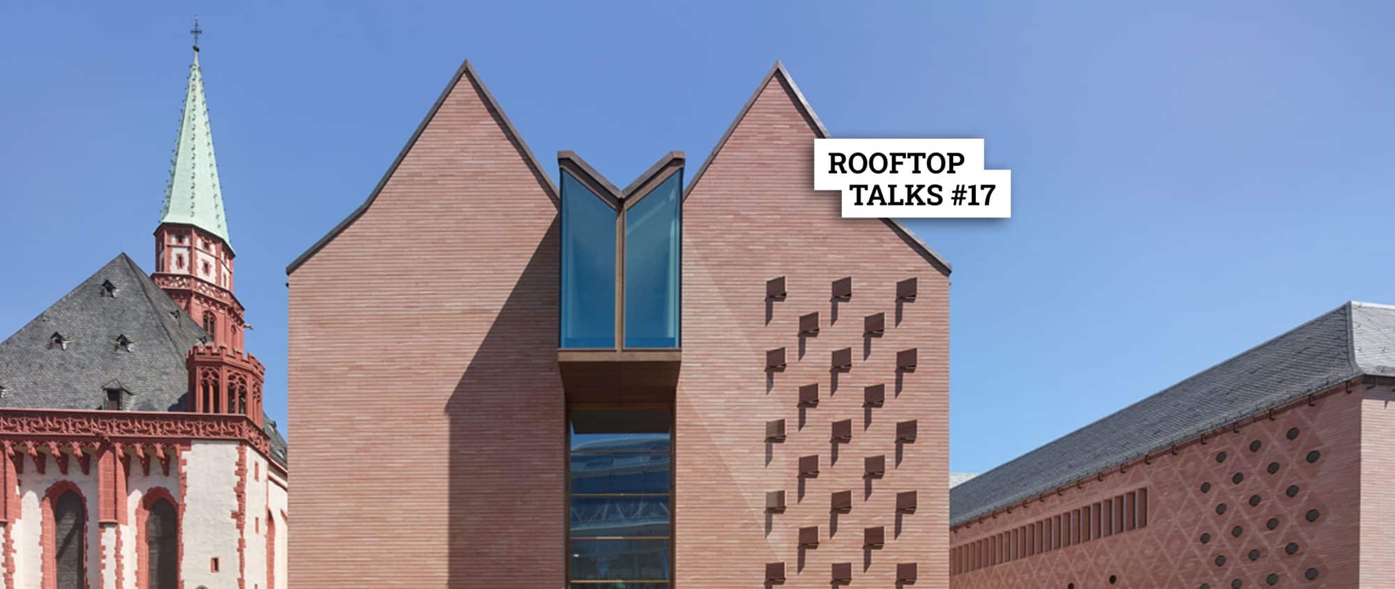 Die RoofTopTalks#17 beschäftigen sich mit dem Thema „Nachhaltige Stadtreparatur“. Passend dazu wurde auch der Veranstaltungsort ausgewählt: Das Haus am Dom vom Frankfurter Büro Jourdan & Müller PAS ist selbst ein Beitrag zur nachhaltigen Stadtreparatur und bietet einen wunderbaren Blick über die Frankfurter Dachlandschaft.