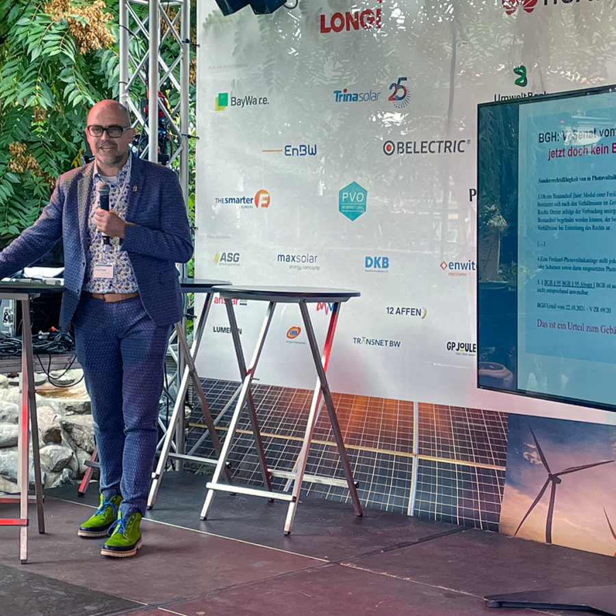 QVSD-Vorstandsmitglied Andreas Kleefisch, Fachanwalt für Bau- und Architektenrecht, berichtete in seinem Vortrag über „Qualität bei der Errichtung von PV-Anlagen aus rechtlicher Sicht“.