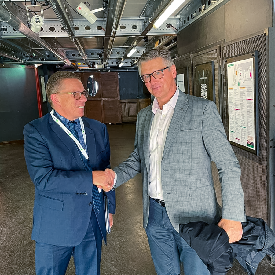 FLECK-Geschäftsführer Christoph Nielacny (l.) freute sich, QVSD-Vorstandsvorsitzenden Arnold Berens (r.) persönlich zu treffen.