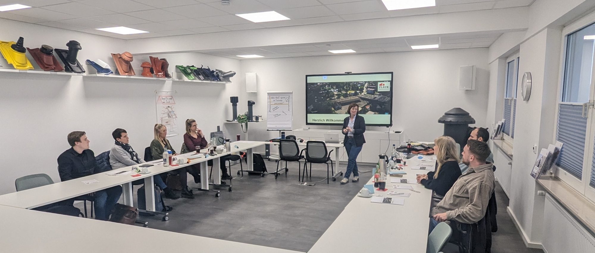 Am 22. März und 19. April war Claudia Marion von „DAS SCHULUNGSBÜRO“ zu Gast in der FLECKtory – Oskar Fleck Informationszentrum, um das Fachwissen unserer Mitarbeiter aus dem Innendienst sowie dem Controlling und dem Einkauf zum Aufbau von Flach- und Steildächern aufzufrischen. Die Kollegen ziehen ein positives Fazit.