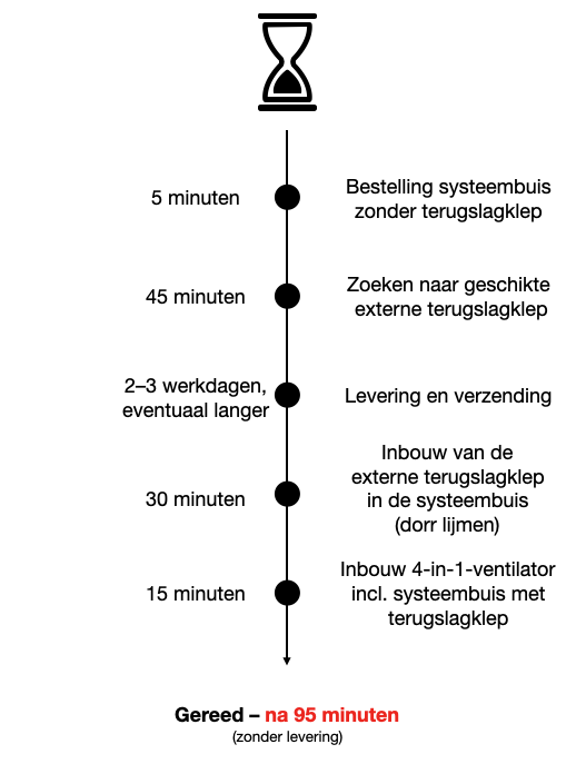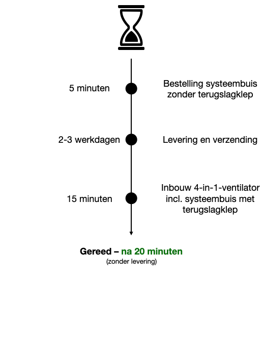 Een terugslagklep wordt alleen aanbevolen bij gebruik van gemotoriseerde ontluchtingen. Bij FLECK wordt de terugslagklep indien nodig al in de systeembuizen voor de 4-in-1-platdakventilator CLASSIC geïntegreerd. Extra werk voor installatie achteraf komt te vervallen. De systeembuizen worden voorgemonteerd geleverd. Dit bespaart niet alleen tijd bij transport en installatie, maar ook bij het zoeken en aanschaffen van de materialen. De bespaarde tijd kan optimaal worden gebruikt voor andere werkzaamheden. Samen met de 4-in-1-platdakventilator CLASSIC van FLECK ontstaat een onverslaanbare symbiose. Naar wens zijn de systeembuizen bij FLECK ook beschikbaar met thermische isolatie.