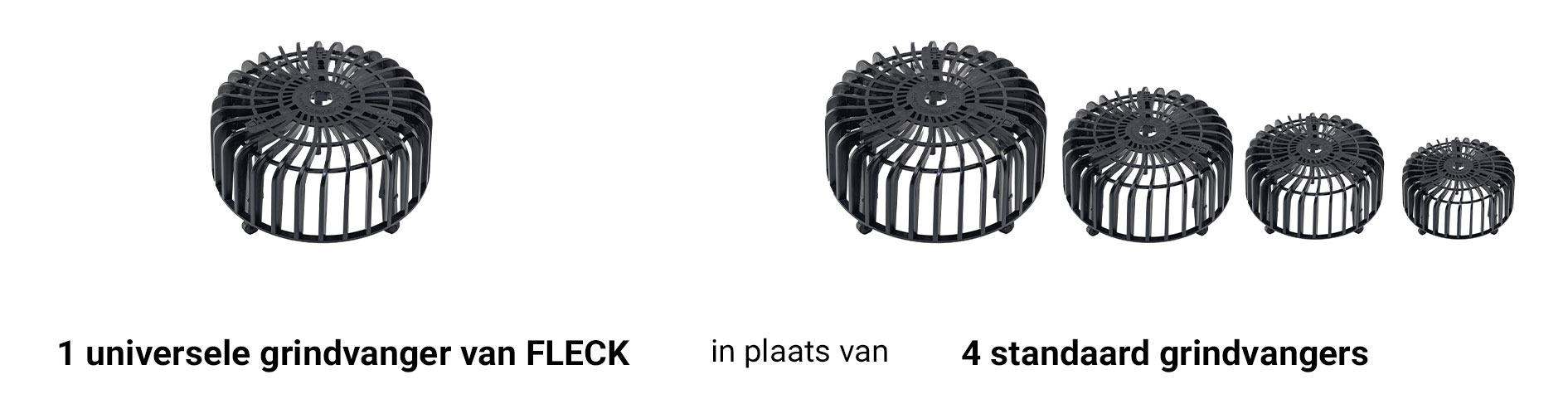 De Universele grindvanger van FLECK: is individueel inzetbaar voor potbreedtes van DN 70 – DN 150.