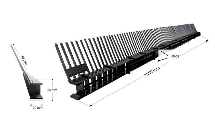 • Zur Belüftung von Steildächern unter der Ziegelebene