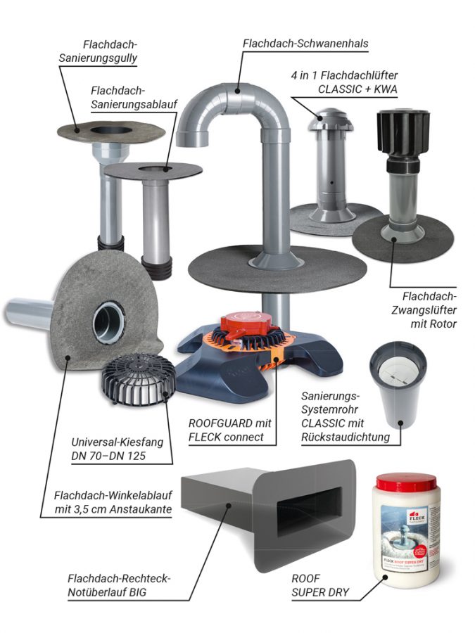 Dass Flach- und Steildächer im unmittelbaren Vergleich nicht über dieselbe Lebensdauer verfügen, ist kein Geheimnis. Spricht man bei Steildächern von einer durchschnittlichen Nutzungsdauer von teilweise weit über sechs Jahrzehnten, sind es beim Flachdach oftmals lediglich 20 Jahre. Verschmutzungen, dauerhafte Pfützenbildungen und Witterungseinflüsse wie UV-Strahlung, Sturm, Hagel oder Frost beschleunigen den Alterungsprozess. Oft stehen Eigentümer dann vor der Frage: Sanieren oder neu bauen? Die Erfahrung zeigt: In vielen Fällen lohnt es sich, eine Teil- oder Vollsanierung anzustreben, um die Lebensdauer mit verhältnismäßig kostengünstigen Maßnahmen zu verlängern. Im Sortiment von FLECK finden sich viele Produkte, die speziell auf Sanierungsmaßnahmen von Flach- und Steildächern abgestimmt sind.